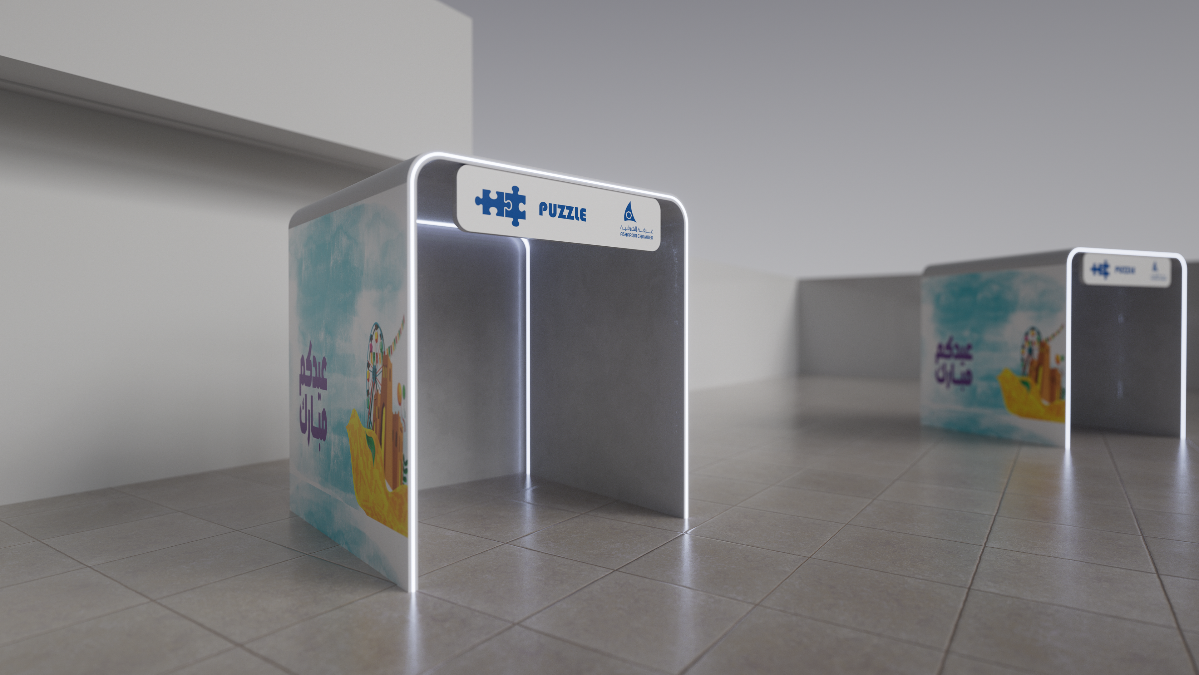 A festive event concept featuring interactive games and a central live performer to enhance visitor engagement and atmosphere. The project was creatively developed but not executed due to budget constraints.
