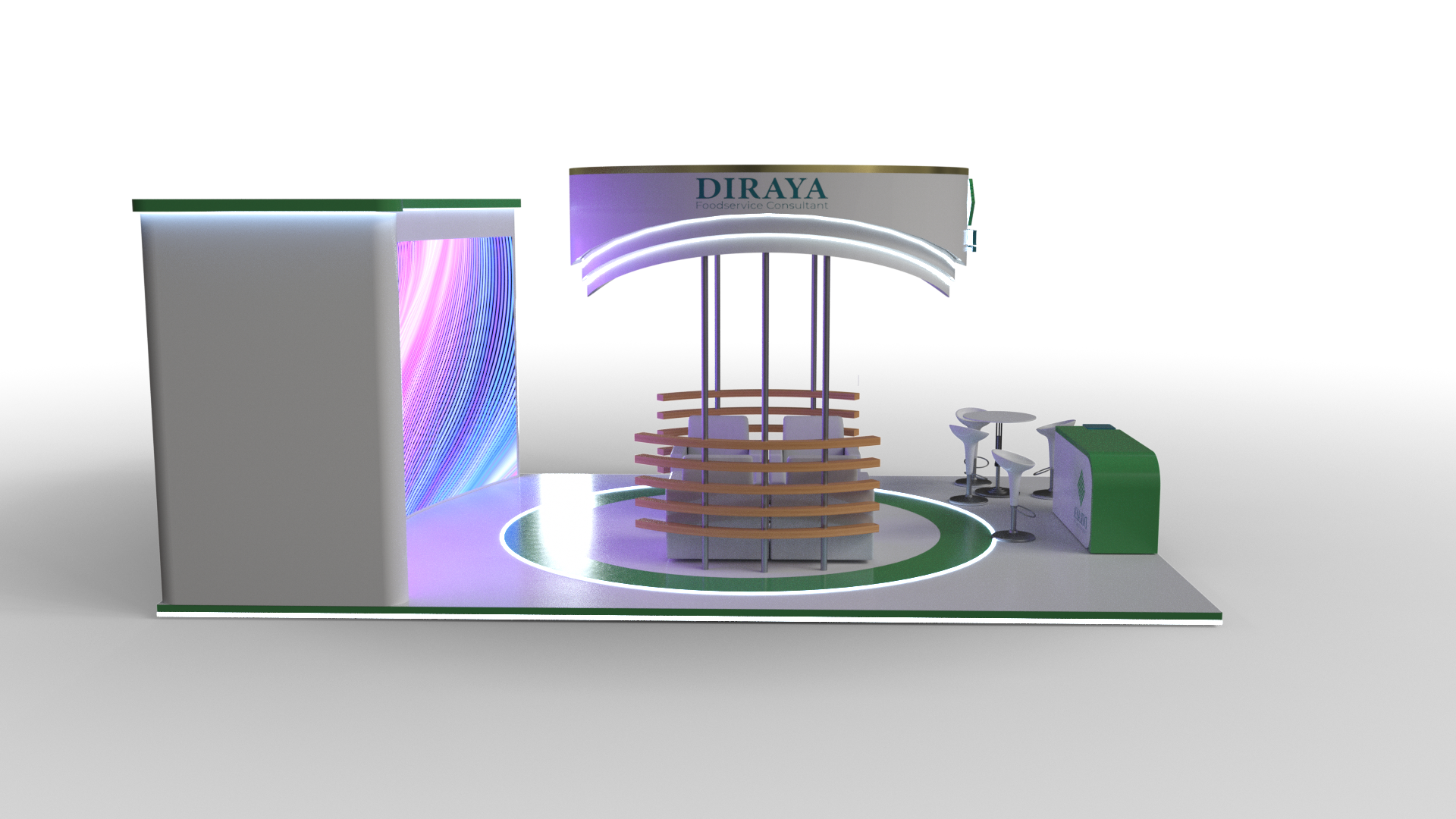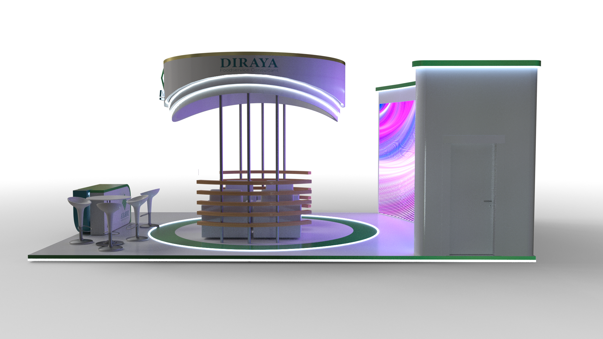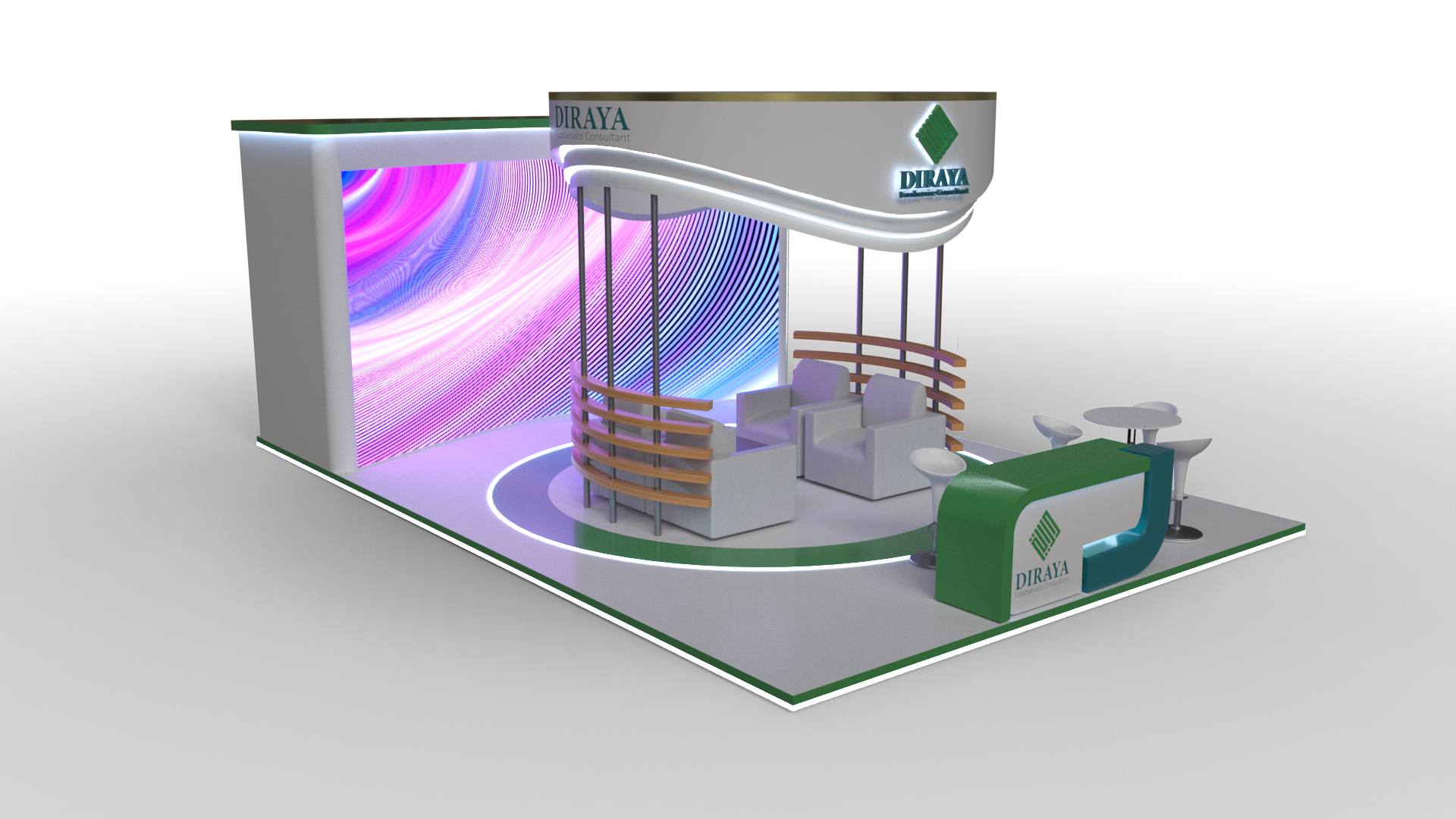 The Diraya Booth presents a modern and sophisticated exhibition space that reflects trust, innovation, and financial excellence. The design combines clean architectural lines with refined materials and subtle lighting to create a premium and welcoming atmosphere. A well-planned layout ensures smooth visitor flow, with integrated digital displays and dedicated areas for interaction and meetings. The overall experience enhances brand presence while delivering a professional and engaging environment.